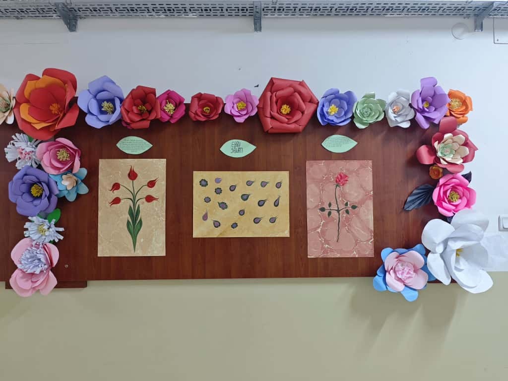 Görsel Sanatlar öğretmenlerimizin rehberliğinde öğrencilerimizin büyük emekle hazırladığı ebru sanatı eserleri, panomuzu renklendirdi.